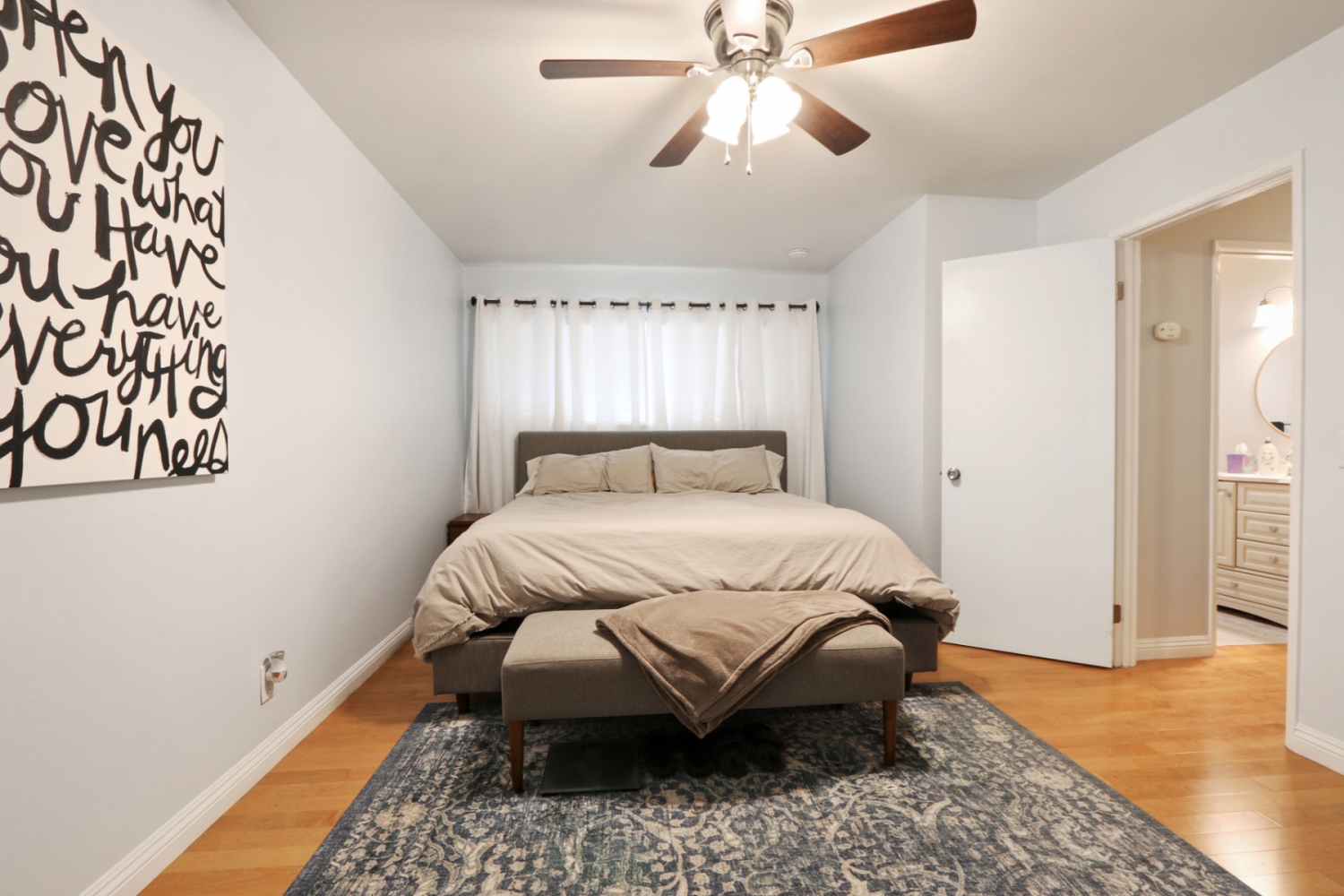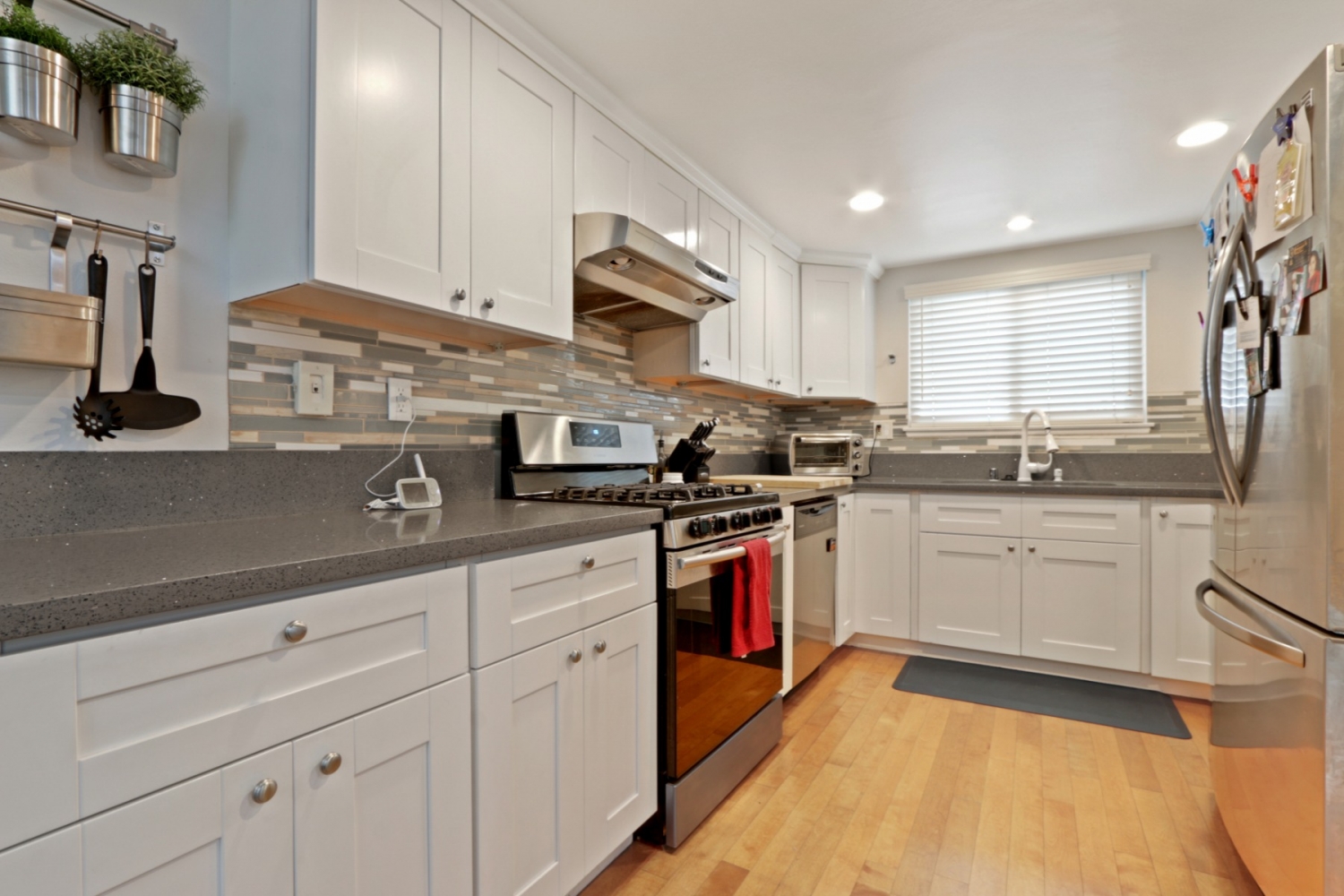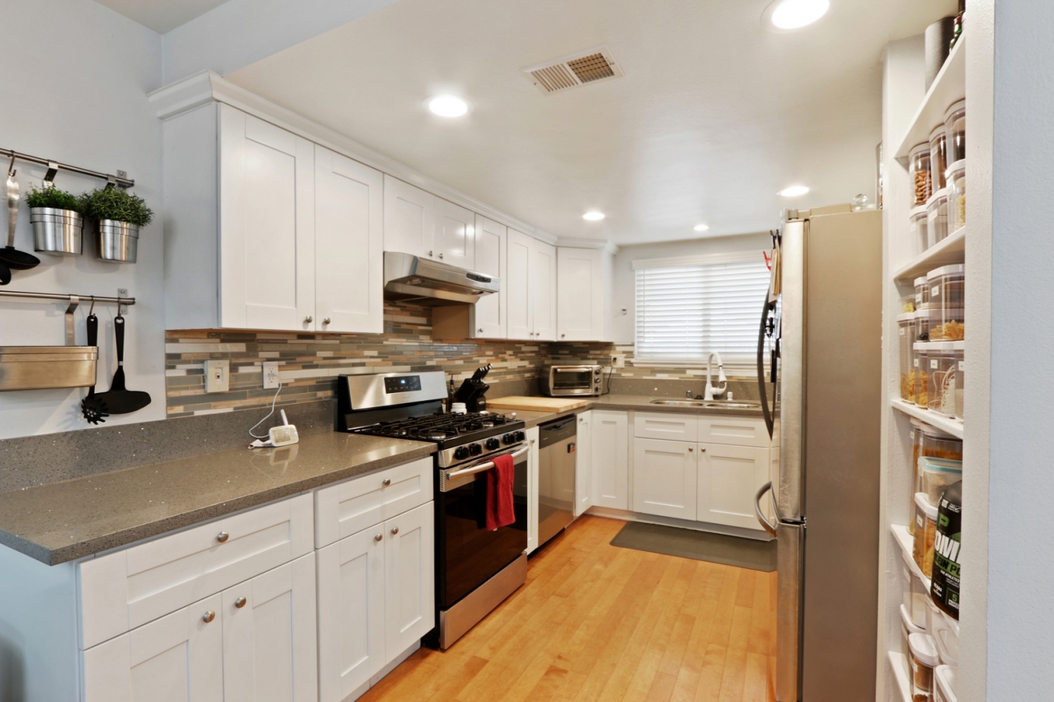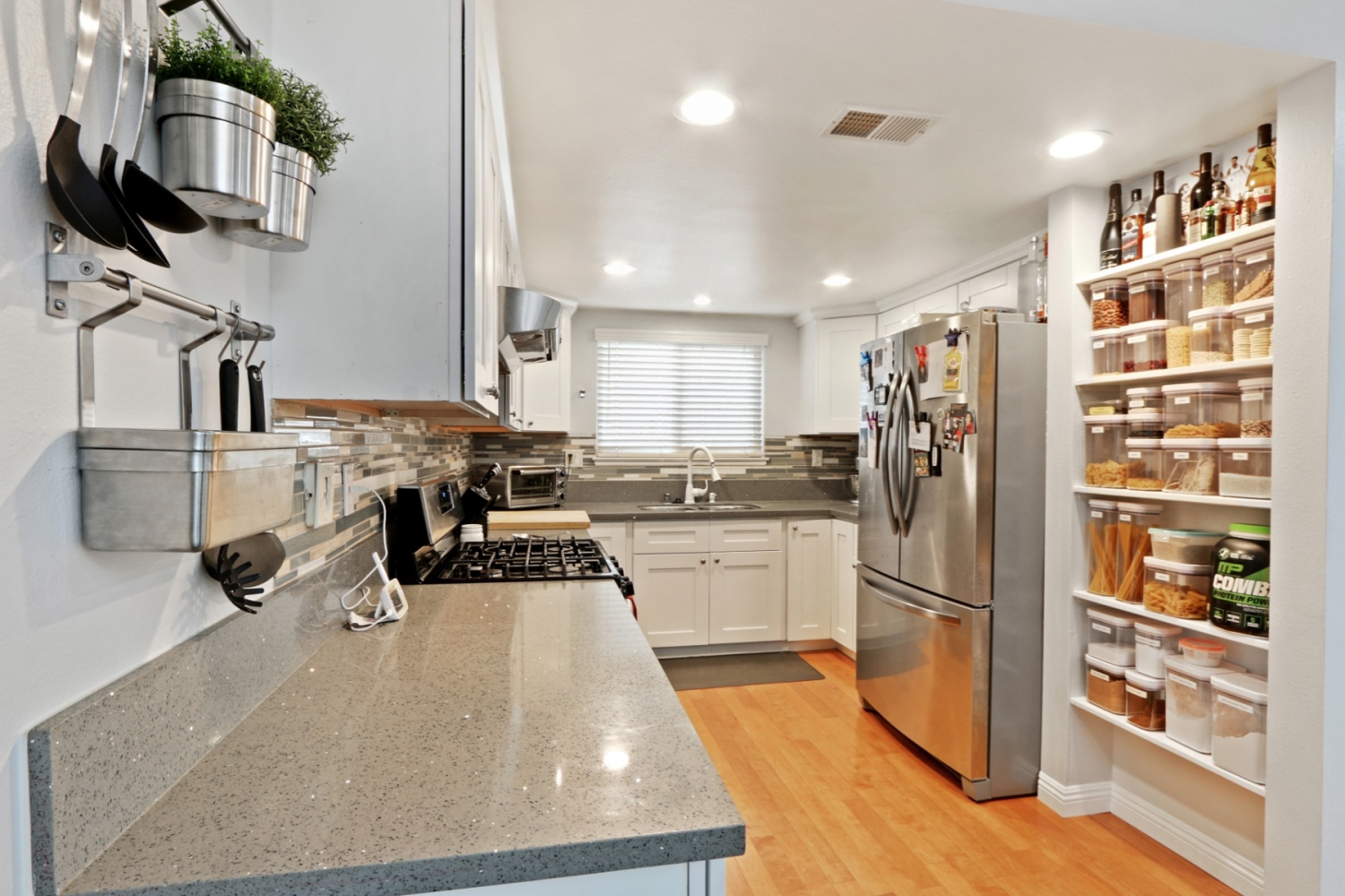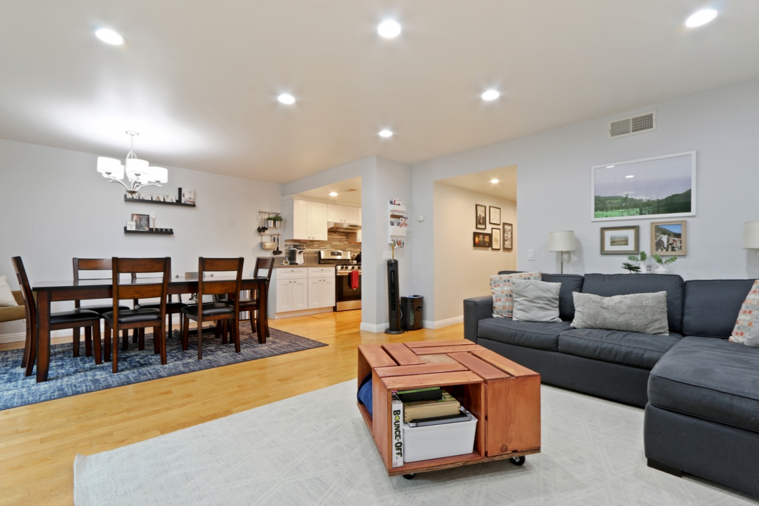 MOVE IN READY! This 2 bedroom 1.5 bathroom condo located in La Habra. Features remodeled kitchen with soft close cabinets. The ample sized living room features recessed lighting and direct access to your private patio. Upstairs boasts a large master bedroom with custom walk in closet, a second bedroom and full bath. Other features include laundry room, hardwood flooring through out, dual pane windows, crown molding and newer ceiling fans in both bedrooms .